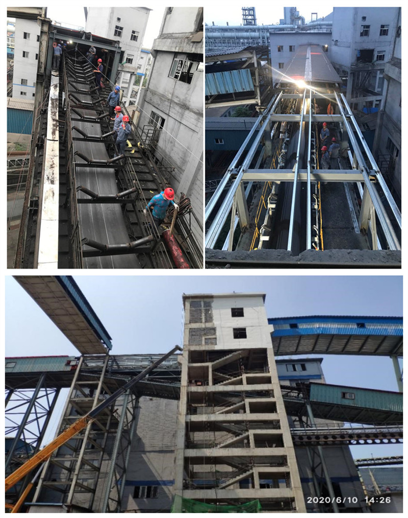 至新區(qū)7、8號焦?fàn)t輸煤生產(chǎn)線是焦化筒倉一期一步工程施工難度最大的一條生產(chǎn)線,新建3個轉(zhuǎn)運站、2條皮帶通廊、改造1條皮帶通廊,全長400多米。皮帶通廊即有半地下鋼筋混凝土結(jié)構(gòu)也有架空鋼結(jié)構(gòu),架空部分緊靠鐵路及高落差護坡,與生產(chǎn)嚴(yán)重交叉,組織施工及吊裝難度極大。項目部各專業(yè)人員積極配合,協(xié)調(diào)各施工單位,分段作業(yè),由于組織得力,各專業(yè)銜接緊密、配合緊張有序,土建積極給鋼結(jié)構(gòu)、鋼結(jié)構(gòu)積極為機裝、機裝積極為電裝及后工序創(chuàng)造條件,特別是最后三天,鋼結(jié)構(gòu)收尾、支架及皮帶安裝、單機調(diào)試、設(shè)備運行調(diào)整、舊皮帶通廊改造、新舊系統(tǒng)聯(lián)動控制調(diào)試、照明報警及語音系統(tǒng)安裝調(diào)試,時間緊任務(wù)重施工難責(zé)任大,現(xiàn)場各類施工人員多,項目部人員靠現(xiàn)場,緊抓安全,積極協(xié)調(diào),最終克服了各種困難,最終超額提前圓滿完成任務(wù)。