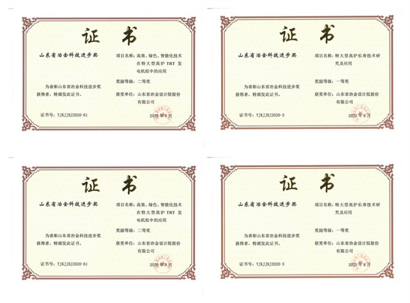 日前,山東省冶金工業(yè)總公司公布2020年度山東省冶金科技進(jìn)步獎獲獎項(xiàng)目,其中我公司申報的《特大型高爐長壽技術(shù)研究及應(yīng)用》、《大型燒結(jié)機(jī)節(jié)能環(huán)保綜合技術(shù)研究與應(yīng)用》、《鋼管混凝土格構(gòu)柱+主次桁架屋蓋重型冶金廠房體系研究與應(yīng)用》3個項(xiàng)目榮獲一等獎,《高效、綠色、智能化技術(shù)在特大型高爐TRT 發(fā)電機(jī)組中的應(yīng)用》榮獲二等獎。
