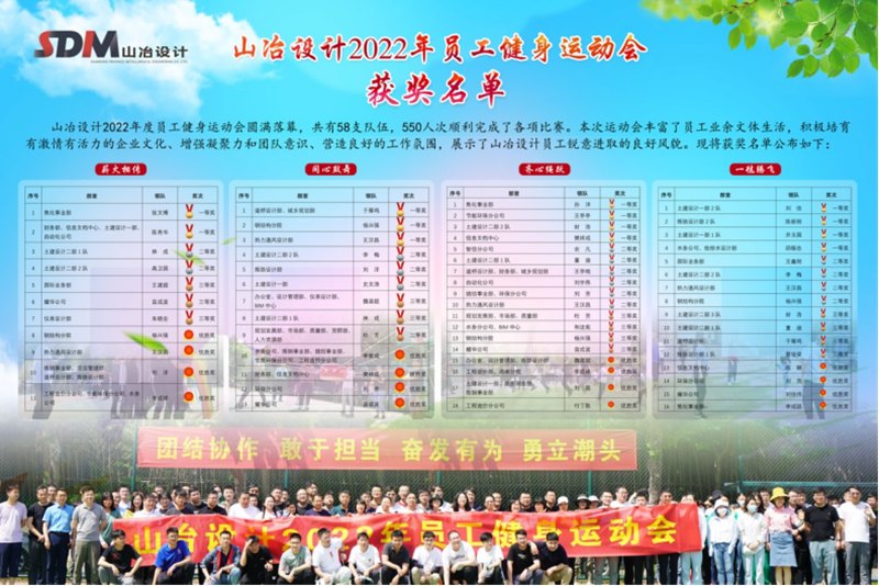 運動會共設(shè)置了四個團隊協(xié)作項目,“一毽騰飛”、“齊心繩躍”、“同心鼓舞”和“薪火相傳”,趣味性與挑戰(zhàn)性并存、鍛煉運動員的靈活性、協(xié)調(diào)性和團隊默契。經(jīng)過認真策劃組織,共有58支隊伍,500多名運動員順利完成了各項比賽。全體運動員、裁判員充分發(fā)揮“團結(jié)協(xié)作、敢于擔當、 奮發(fā)有為、勇立潮頭”的精神,取得了優(yōu)異的成績,展示了山冶設(shè)計員工銳意進取的良好風貌。