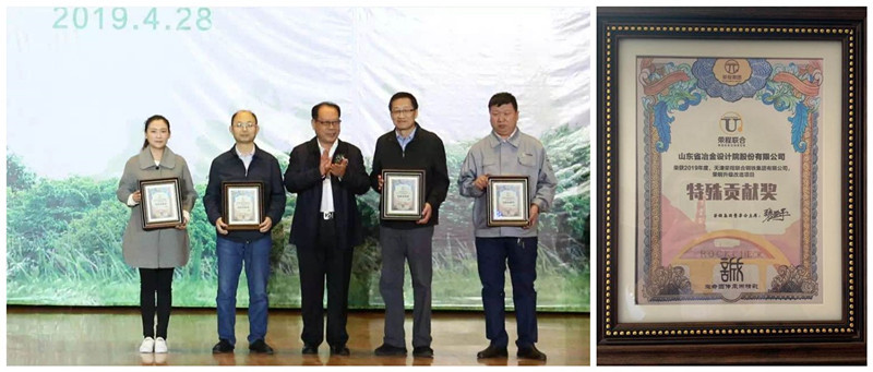 2019年4月28日應天津榮程聯合鋼鐵集團有限公司邀請,我公司副院長吳兆軍出席了天津榮程建廠18周年慶祝活動及頒獎典禮,并榮獲了由榮程集團董事局主席張榮華女士親筆簽名、榮程集團張增述總監親自頒發的“2019年度榮鋼升級改造項目特殊貢獻獎”,以表彰我公司為榮程戰略發展做出的突出貢獻。