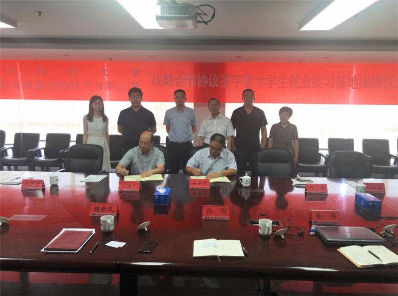 2019年7月23日,山冶設(shè)計(jì)與北京科技大學(xué)戰(zhàn)略合作框架協(xié)議簽字儀式暨北京科技大學(xué)大學(xué)生就業(yè)實(shí)習(xí)基地揭牌儀式在濟(jì)南舉行。北京科技大學(xué)土木與資源工程學(xué)院黨委書記紀(jì)洪廣,黨委副書記鄧波一行4人,公司董事長(zhǎng)魏新民,黨委書記谷卓奇,副總經(jīng)理孫彤及相關(guān)科室人員出席了簽字儀式。