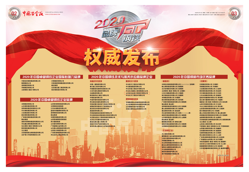 山冶設計喜獲“2020年中國鋼鐵技術與服務供應商品牌企業”